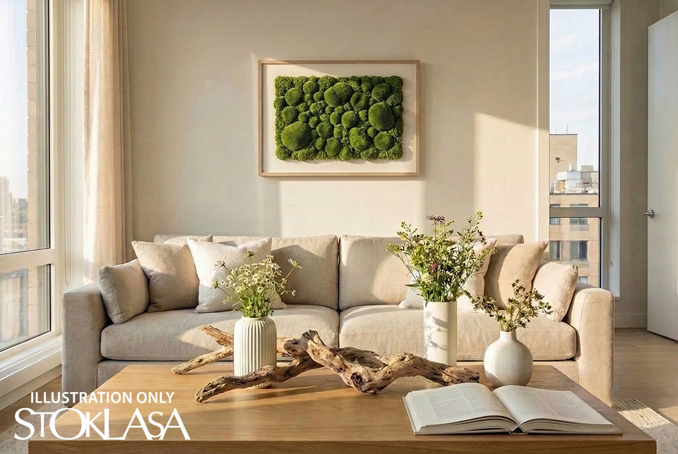 Decorative moss stones can be used for arranging. They will give the space a fresh and natural atmosphere. They will be interesting for decorations not only at home, but also in shop windows, etc. Thanks to the polystyrene base, decorations can be easily inserted into them. Different sizes of stones allow you to create unique decorative compositions .